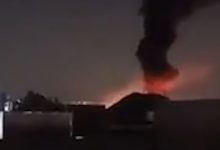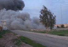 تصاعد الدخان بعد استهداف قاعدة فكتوريا بمطار بغداد بطائرة مسيرة