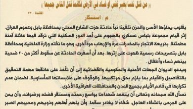 الكاظمي يأمر جهاز الامن الوطني بالتحقيق في حادثة جبلة