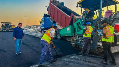 شركة النرجس للمقاولات تعلن استمرار أعمال تبليط الطبقة الاكسائية النهائية المعالجة بالبوليمر ضمن مشروع مجاري الزبير المرحلة الثانية