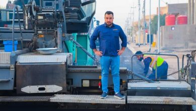 شركة النرجس للمقاولات تعلن استمرار أعمال تبليط الطبقة الاكسائية النهائية المعالجة بالبوليمر ضمن مشروع مجاري الزبير المرحلة الثانية