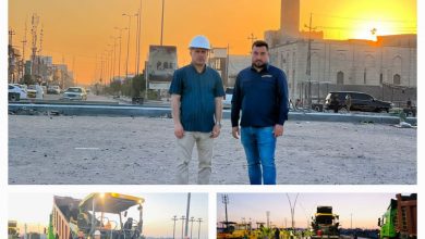 الحكومة المحلية تتابع الاشراف الميداني على تنفيذ أعمال الفقرات الخدمية وتعلن المباشرة بتبليط طبقة الاساس لفلكة الشهيد ماهر ثويني
