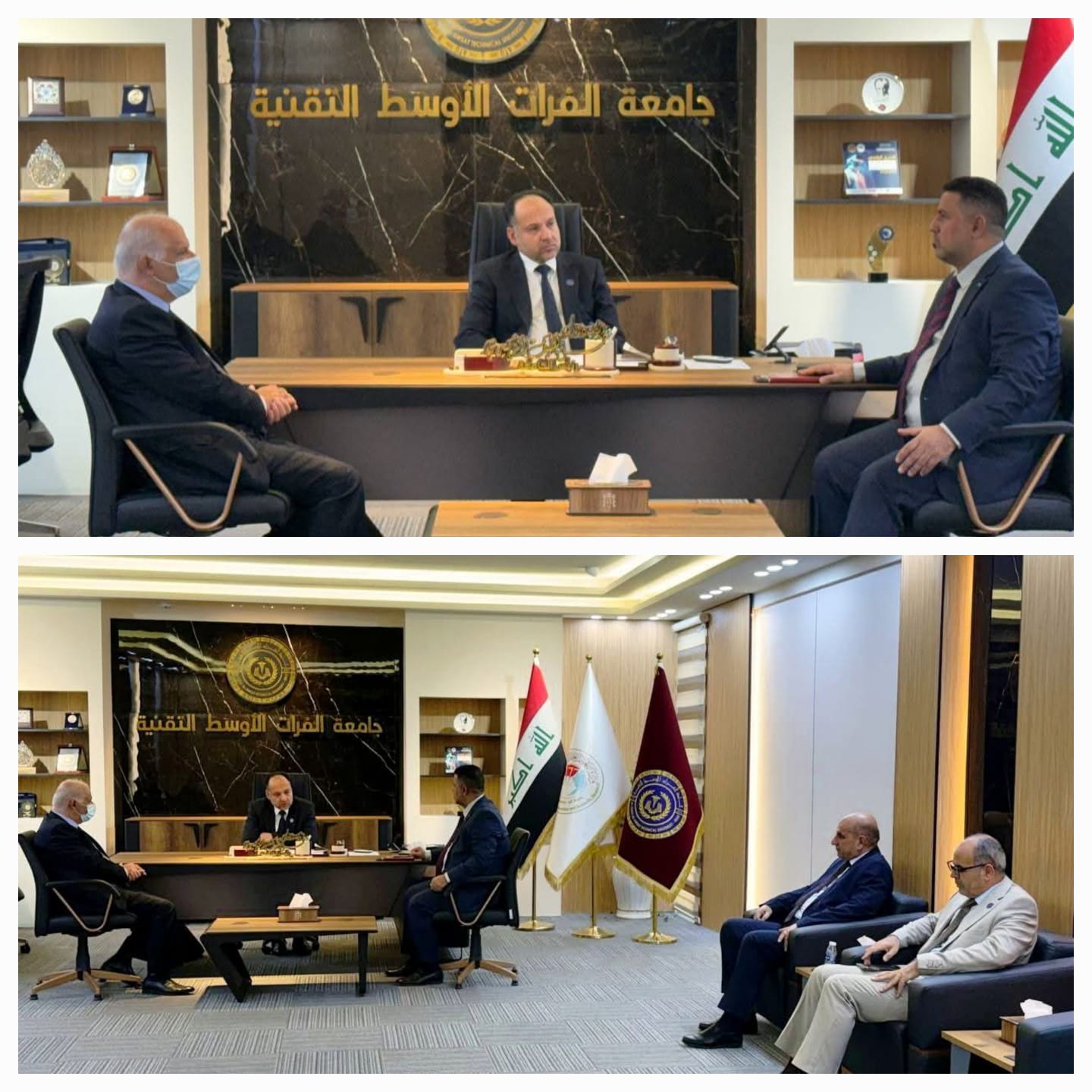 رئيس جامعة الفرات الأوسط التقنية يستقبل وفدًا من غرفة صناعة النجف الأشرف