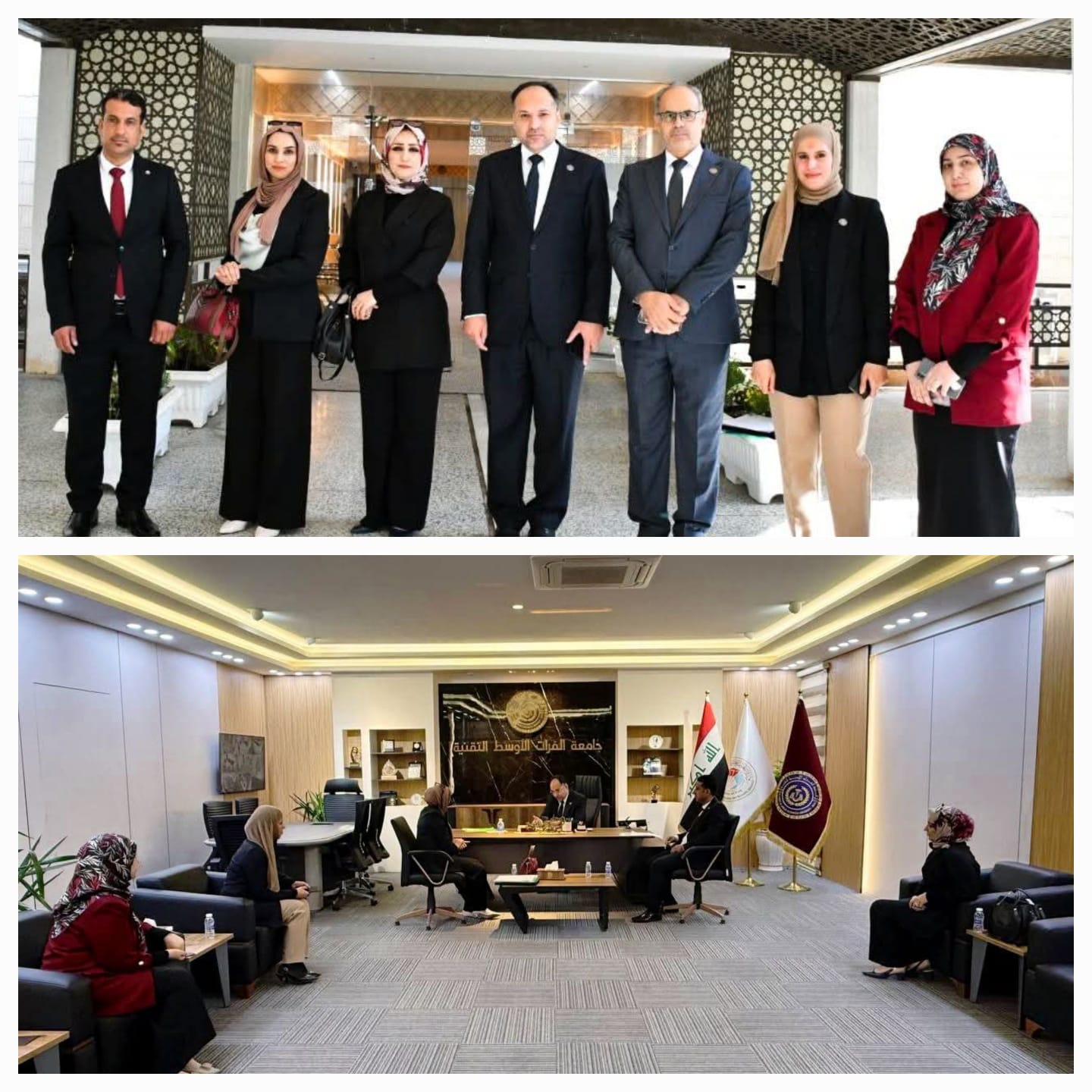 استقبلت جامعة الفرات الأوسط التقنية اللجنة الوزارية المختصة بمتابعة عمل شؤون المواطنين، وذلك للاطلاع ميدانيًا على آليات العمل ومستوى الخدمات المقدّمة للطلبة والمراجعين في رئاسة الجامعة وتشكيلاتها.