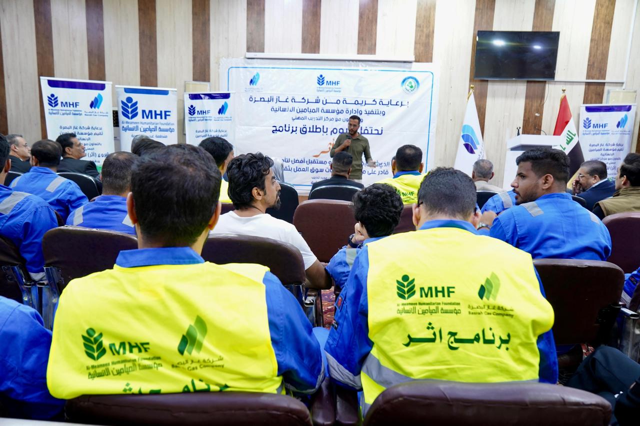 احتفلت شركة غاز البصرة بختام برنامج “أثر” لتدريب ذوي المهن، وذلك بالتعاون مع مؤسسة الميامين الإنسانية ومركز التدريب المهني التابع لوزارة العمل. وقد أتمَّ هذا البرنامج تدريب 120 متقدمًا من كلا الجنسين في مجالات مهنية مطلوبة في السوق المحلية، ودعم إطلاق مشاريع مُدرّة للدخل من خلال توفير العُدد اللازمة لبدء العمل للمشاركين ورفع الوعي حول قانون الضمان الاجتماعي، ومهارات التسويق، وريادة الأعمال إضافة إلى بناء علاقات قوية وموثوقة مع المجتمع المحلي وكذلك تعزيز فرص الحصول على قروض حكومية أو دعم من جهات مانحة لتوسيع تلك المشاريع. كما تضمنت الدورات التدريبية التي امتدت بشقيها العملي والنظري إلى 25 يوما عدة تخصصات منها: الطاقة الشمسية والتبريد والتكييف وأعمال السباكة والديكورات الداخلية والصناعات الغذائية وصيانة الهواتف المحمولة.