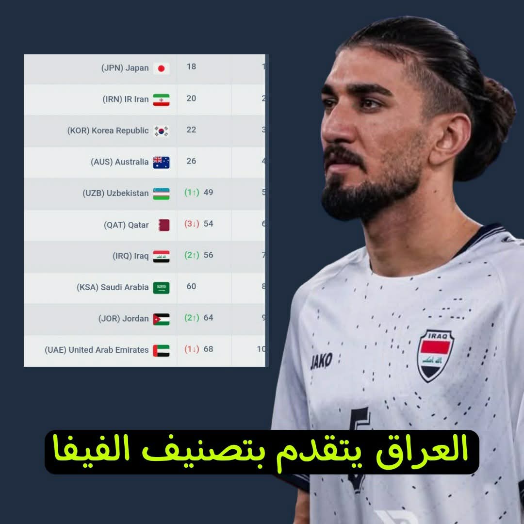 منتخبنا الوطني يتقدم بتصنيف الفيفا ليحتل مركز 56 عالميا وتقدم الاردن 64 عالميا وتراجع قطر 54 عالميا والمغرب يحافظ على مركزه 11 عالميا