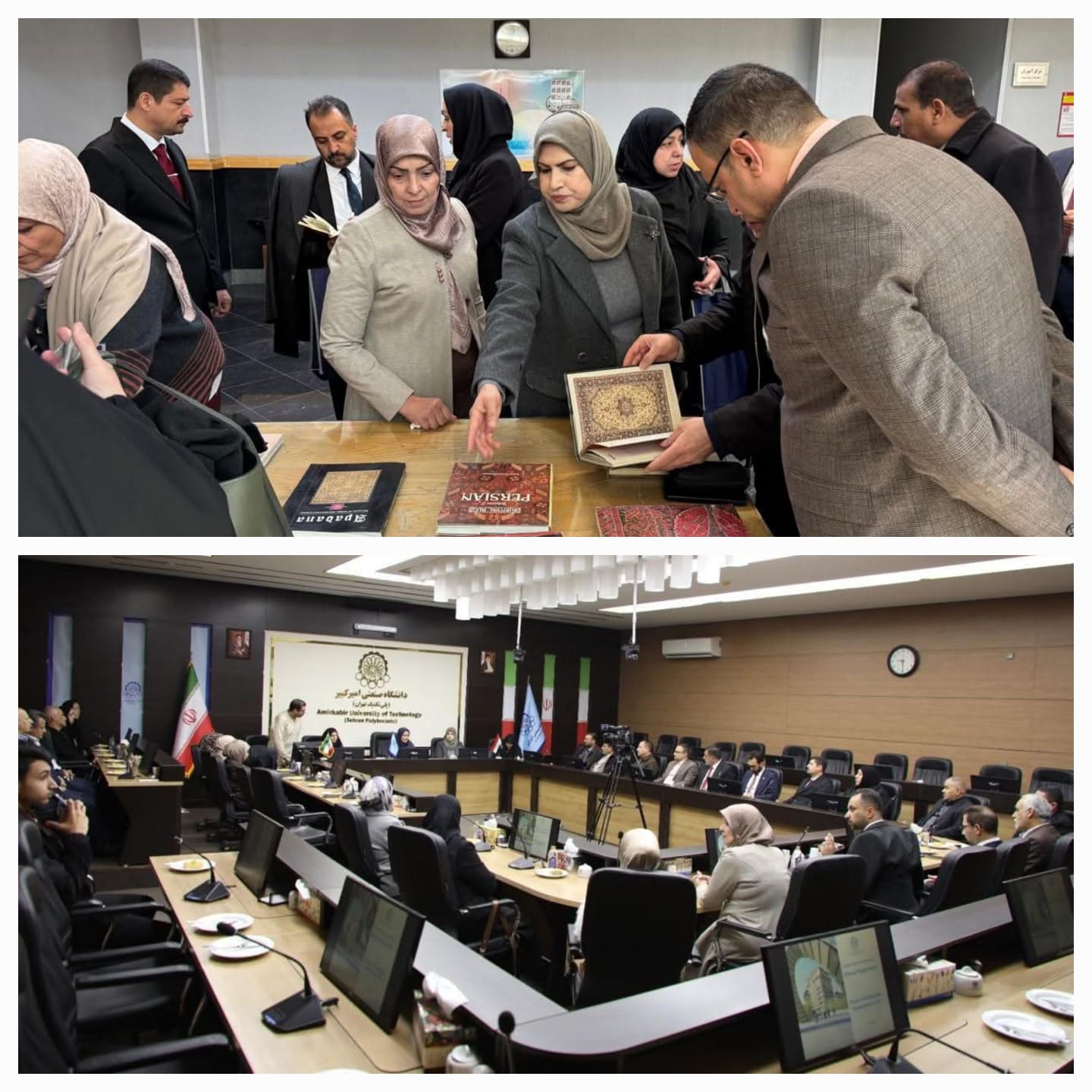 وكان في استقبال الوفد مساعد رئيس جامعة أمير كبير للشؤون الدولية الدكتورة سمية أكبري، ومديرة المكتبة المركزية الدكتورة أشرفي، إلى جانب عدد من مسؤولي ومنتسبي الجامعة، حيث عقدت جلسة ترحيبية جرى خلالها التعريف بالجامعتين وتشكيلاتهما العلمية والإدارية، واستعراض مجالات العمل الأكاديمي والمكتبي فيهما.