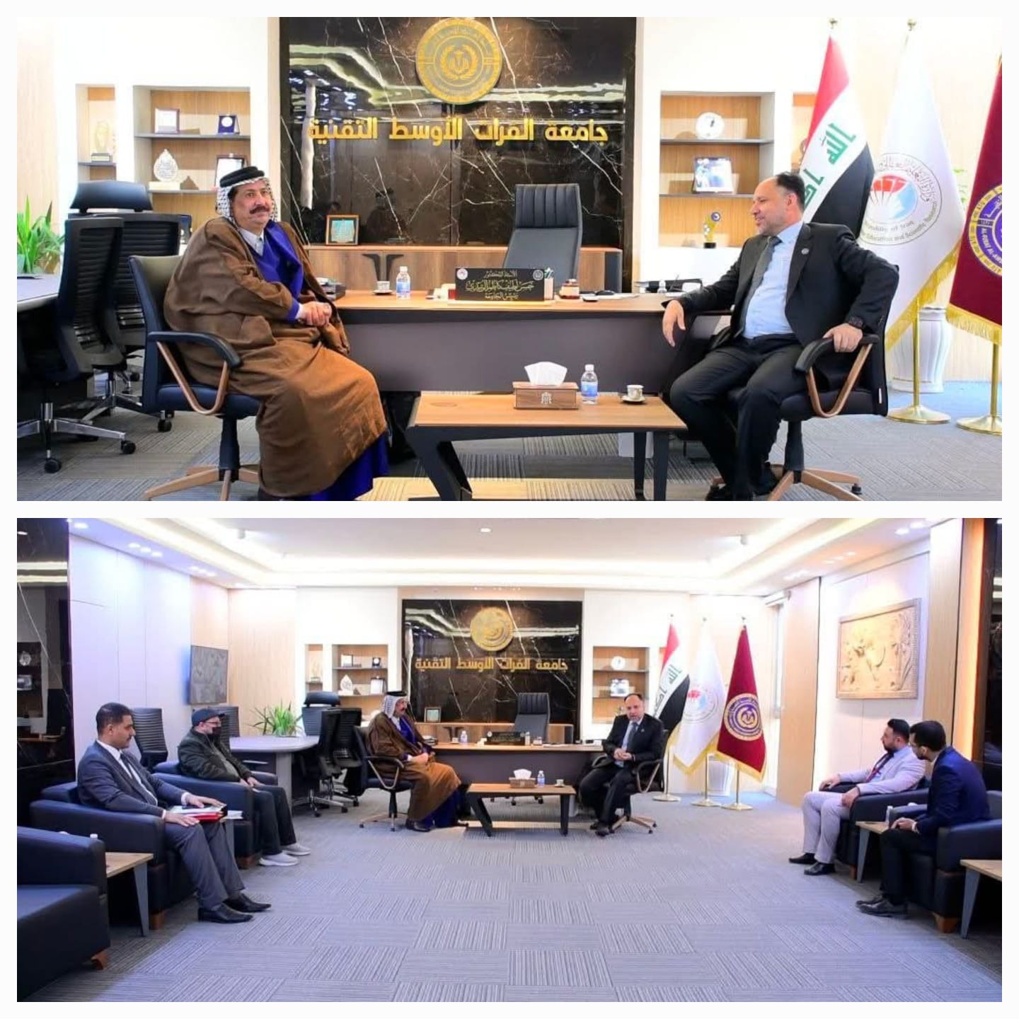 من جانبه، ثمّن الشيخ الحسناوي الجهود التي تبذلها جامعة الفرات الأوسط التقنية في تطوير التعليم العالي، مشيرًا إلى استعداده لتقديم الدعم والمشورة اللازمة فيما يخص تعزيز القيم الأخلاقية والاجتماعية لدى الطلبة والمجتمع.