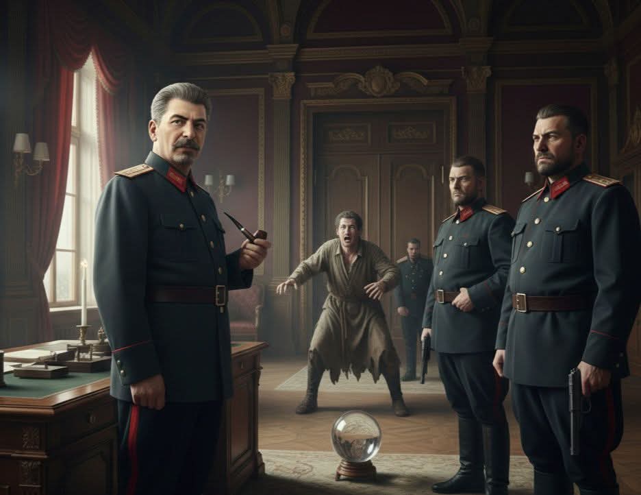 وصل الخبر إلى مكتب ستالين. تنفس الزعيم دخان غليونه ببطء، ونظر إلى الحارس بنظرةٍ باردة كصقيع سيبيريا. لم يسأل عن تفاصيل النبوءة، ولم يراوده الفضول ليعرف غده، بل قال بهدوء مرعب: