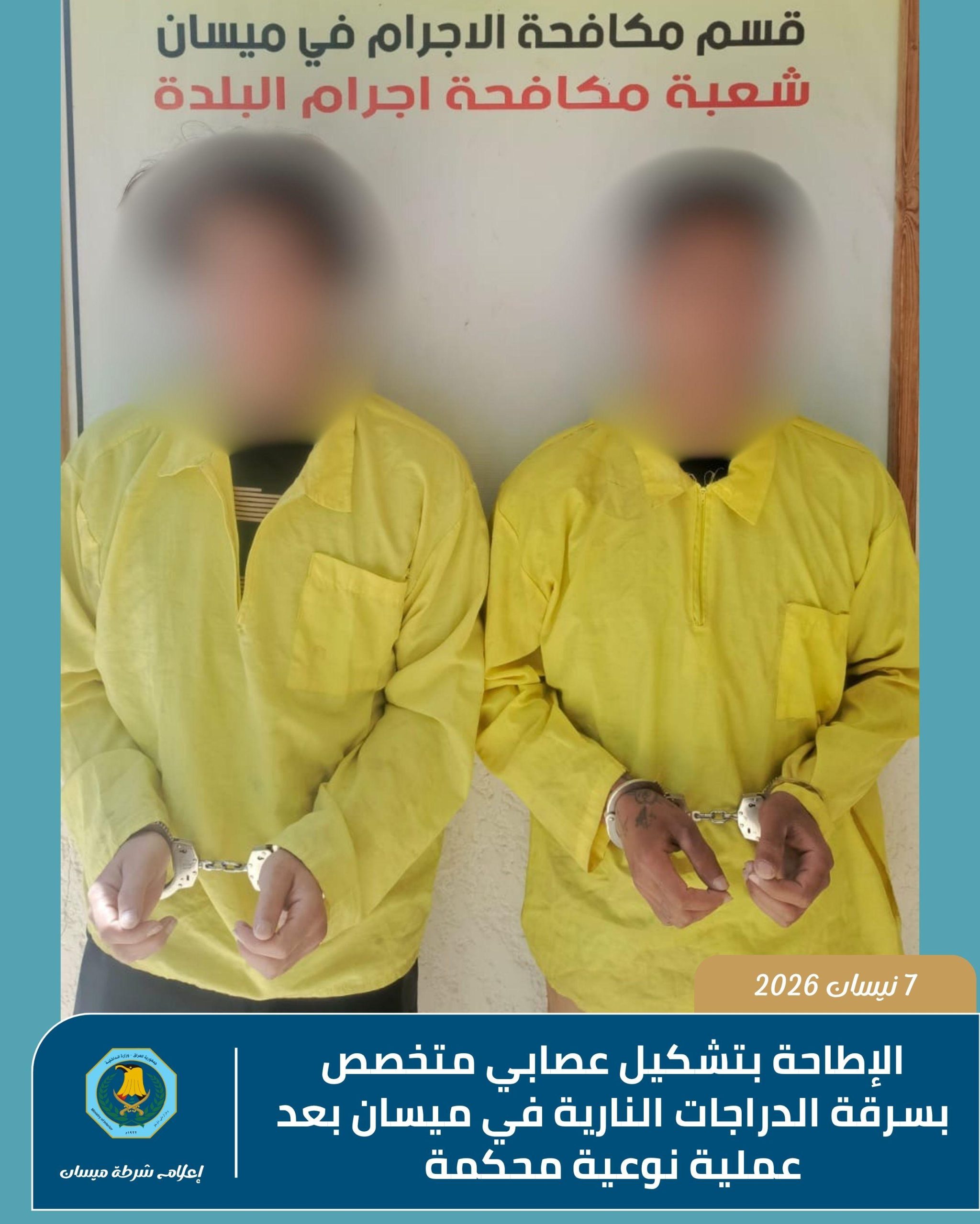 الإطاحة بعصابة لسرقة الدراجات النارية في ميسان بعملية أمنية محكمة