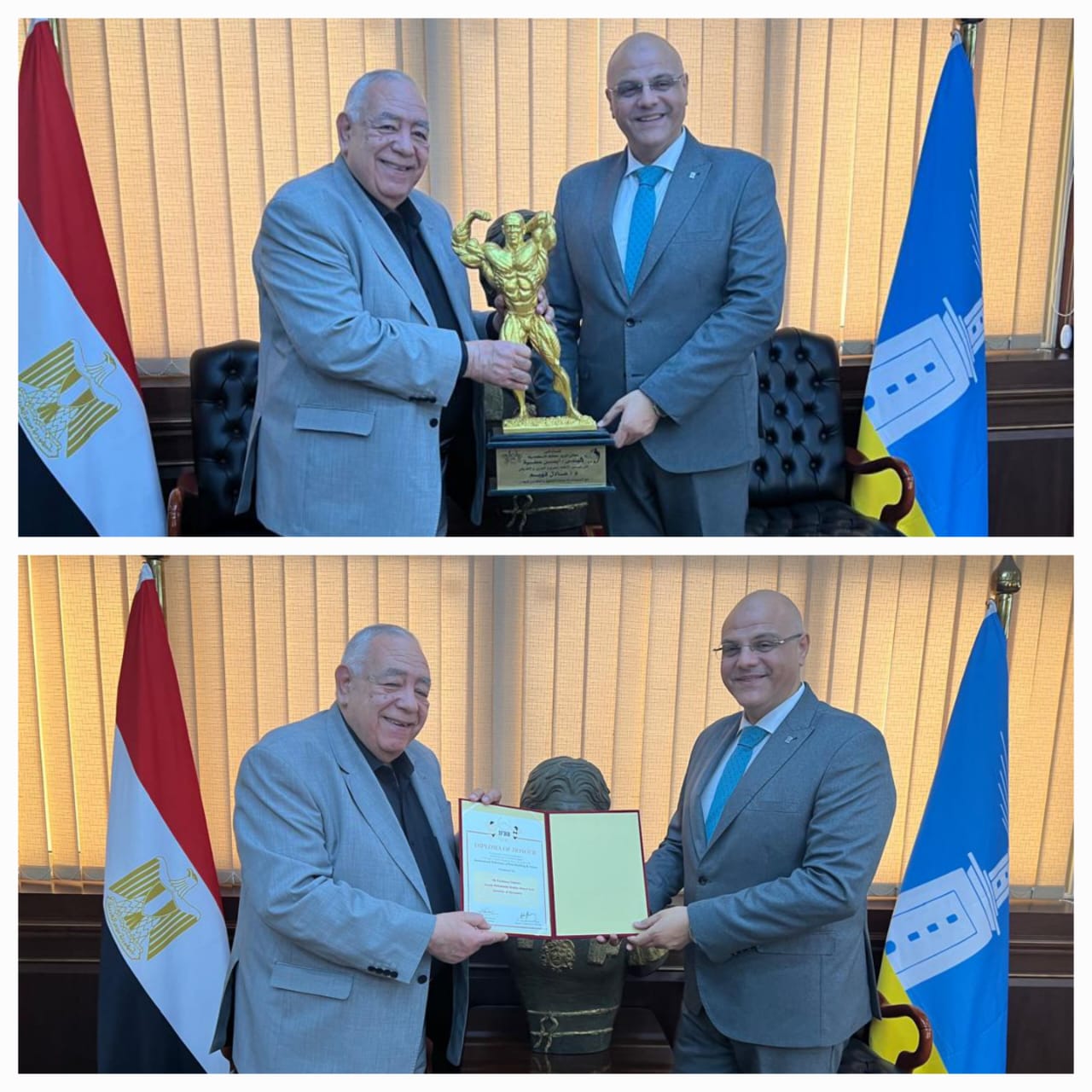 وفي ختام اللقاء، منح الدكتور عادل فهيم، نيابة عن رئيس الاتحاد الدولي الدكتور رافائيل سانتونجا، محافظ الإسكندرية أعلى شهادة تقدير من الاتحاد الدولي، تقديرًا لدوره في دعم الرياضة، وتعاونه الإيجابي في إنجاح استضافة البطولة الإفريقية المقبلة.