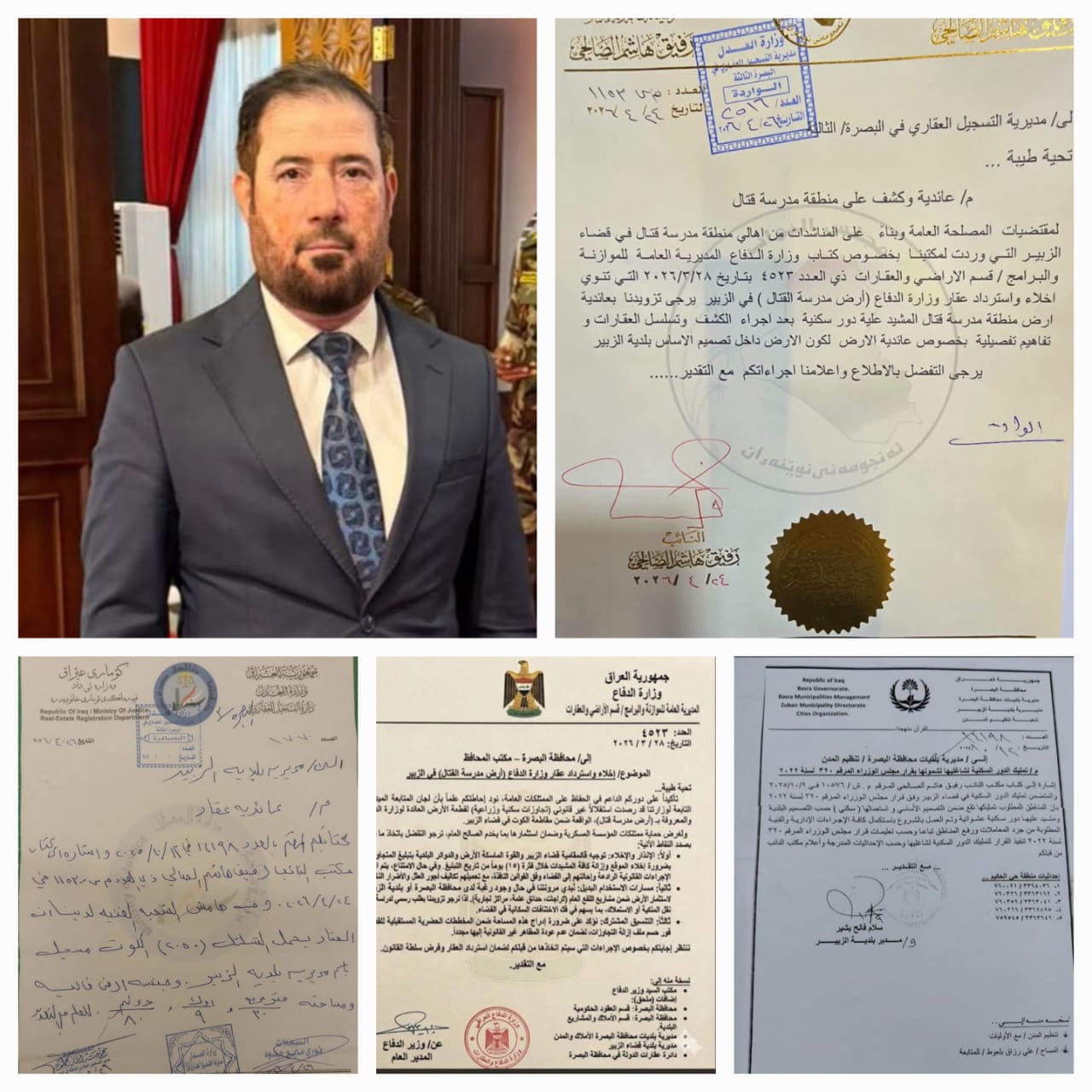 كشف النائب رفيق هاشم الصالحي بعدد المتابعة المستمرة والمباشرة مع الجهات المختصة ومنها ملاحظية التسجيل العقاري بخصوص أرض مدرسة قتال تعود بملكيتها إلى بلدية الزبير وليست من أملاك وزارة الدفاع